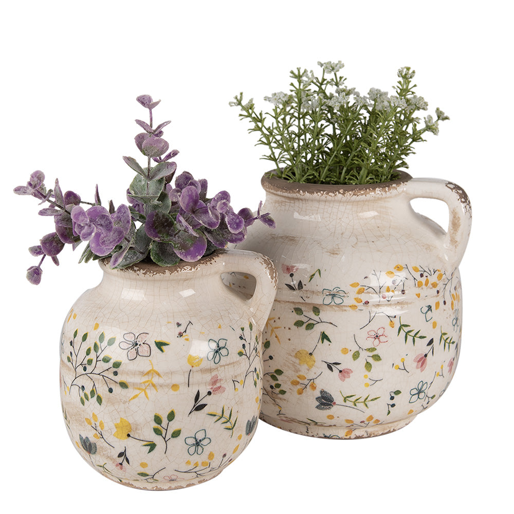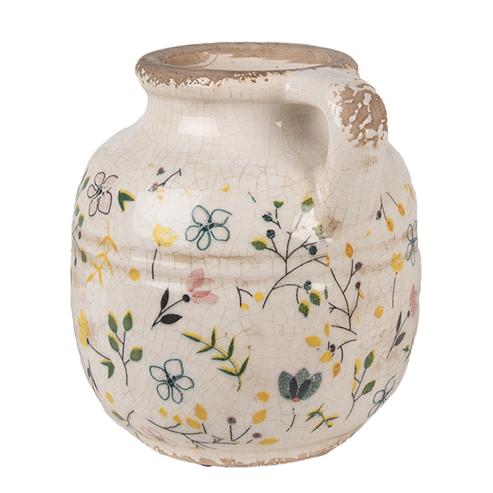 Apportez une touche de charme campagnard à votre intérieur avec ce pichet décoratif en céramique signé Clayre & Eef. Arborant une teinte beige douce rehaussée d’un motif floral coloré, il s’intègre parfaitement à une décoration rustique ou shabby chic.