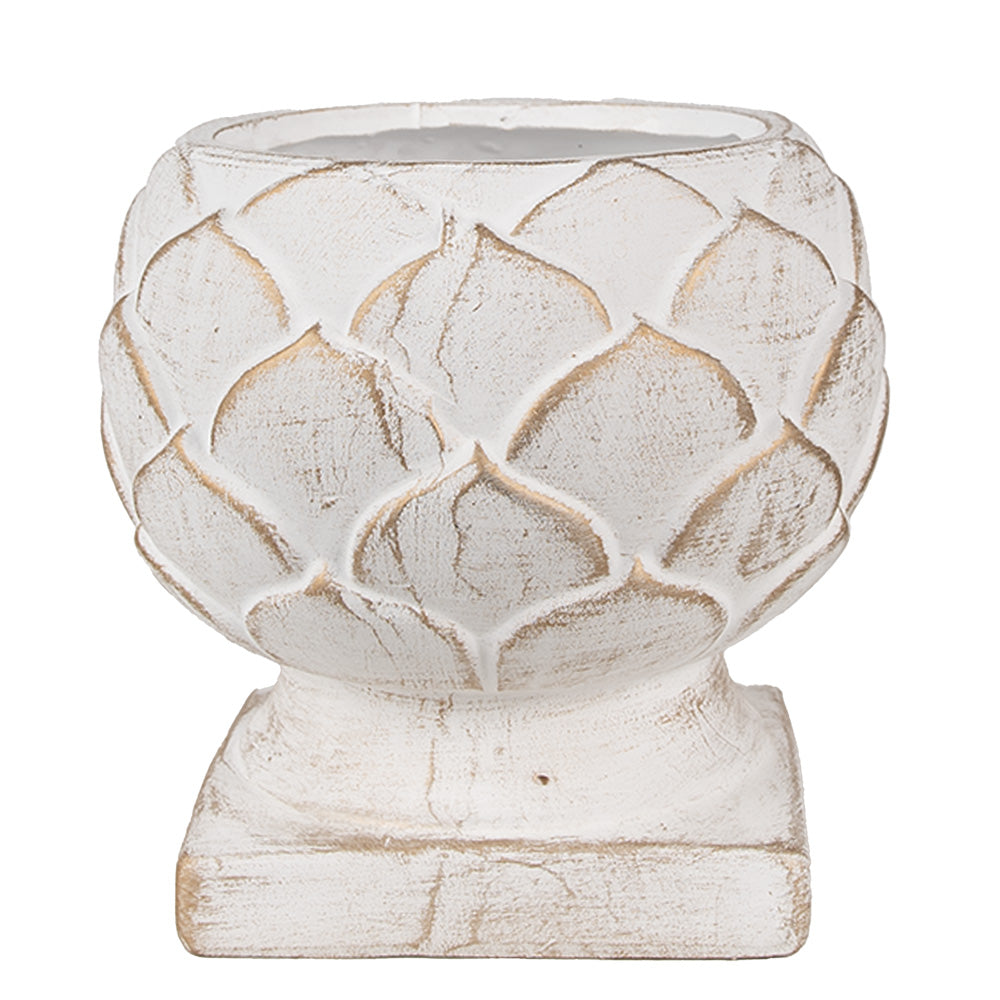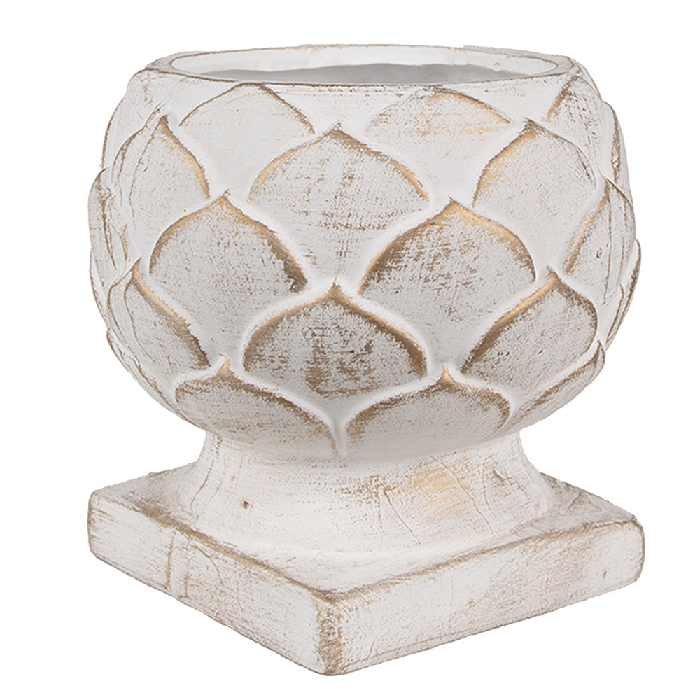 Pot de Fleurs Décoratif en Pierre Blanche – Élégance Naturelle